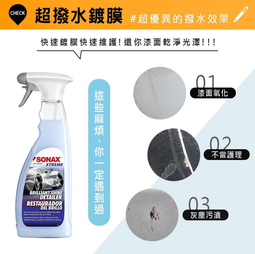 產品名稱 : SONAX BSD 超撥水鍍膜 SONAX XTREME BrilliantShine Detailer (鍍膜保養維護劑QD)